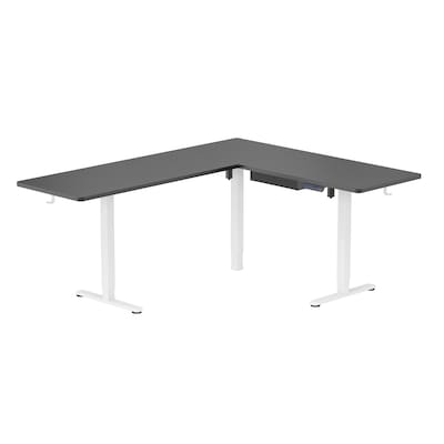 Upgrade your workspace without sacrificing room to work. This extra large corner desk with electric height adjustment combines a spacious three-piece desktop with a flexible design that fits into either corner configuration, making it perfect for home offices, creative studios, and executive setups. Thanks to the powerful dual motor system, you’ll enjoy smooth, reliable height adjustments between 28.3" and 46.5" — all while operating quietly at less than 55dB, so you can stay focused without distractions. Built on a solid steel frame with a 176 lb. weight capacity, this desk supports heavy monitors, laptops, printers, and accessories with ease. The user-friendly control panel lets you save three custom height settings for effortless transitions between sitting and standing throughout the day. Safety features like anti-collision technology automatically stop movement when an obstacle is detected, protecting both your equipment and your desk against damages. Stay organized with thoughtful accessories including a fabric drawer, integrated cable management, and two handy hooks for bags or headphones. Available in black, white, or rustic brown tabletop finishes with your choice of a black or white base, this desk is as stylish as it is functional — designed to help you work smarter, move more, and feel better.