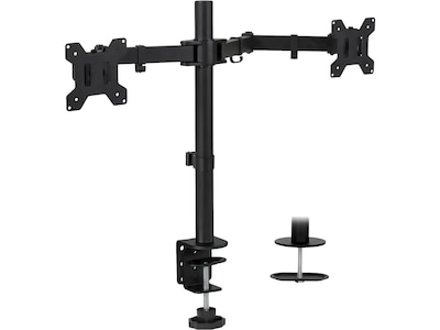 - Constructed of heavy duty steel, integrated cable management clips keep your cables organized, comes with interchangeable C-clamp or grommet bases, and mounting plates are detachable for easy monitor mounting.