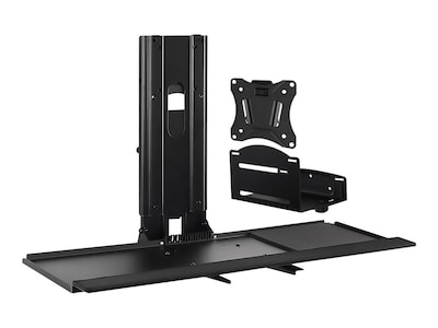 Mount-It! MI-7919 monitor and keyboard tray is designed to create a wall-mounted workstation. It is a space saving and economical solution for small spaces. Most wall mounted workstations or rolling standing desks cost 5 to 10 times the price of this wall mount platform.It is very easy to install and use. The vertical tray connects to the wall mount on the back side and to a monitor on the front side. The large keyboard platform sits directly beneath the monitor. All necessary instructions and hardware included.