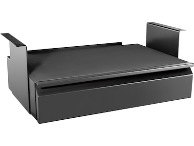 This under the desk pull-out drawer kit offers ergonomic storage and mounts securely under your desk, freeing up much needed space on your desktop! The shelf comes with anti-scratch and anti-slip EVA foam pad for secure storage of your laptop or tablets. The storage drawer has enough room for pens, pencils, paper, tablet, cell phone, and other work supplies. Made out of sturdy steel construction and will last for years. The super smooth sliding mechanism opens and shuts quietly with a minimum extension of 12.2 inches and maximum extension of 18.9 inches. Fits under desktops at least 0.75 inches thick.