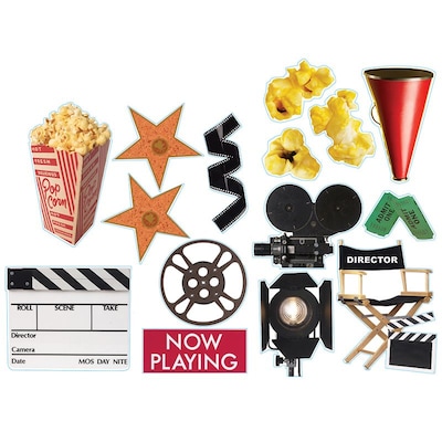 Eureka® 2-Sided decoration kit includes many die-cuts and full-color illustrations photos. Kit with movie theme can be used to decorate windows or bulletin boards throughout the classroom.