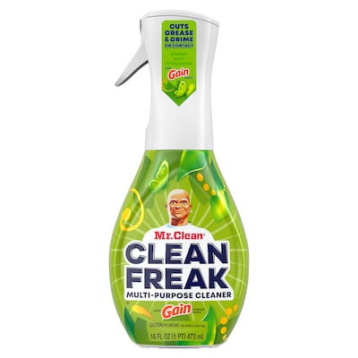 Clean Freak Mist multi-surface spray muscles through grime, tough dirt, and grease to make messes a distant memory. Use it from any angle to put hard-to-reach dirt away for good. And to top it all off, Clean Freak Mist multi-purpose spray leaves your home smelling fresh with a Gain scent.