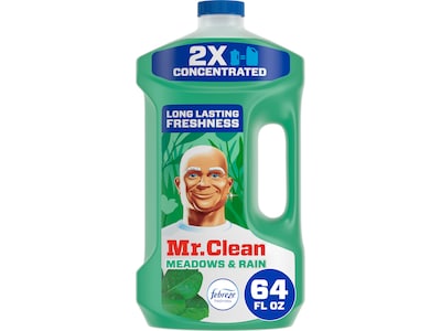 Mr. Clean's two times concentrated liquid formula muscles through 100% of dirt and grease for powerful multi-surface cleaning. This floor cleaner for mopping is great for cleaning linoleum, tile, and hardwood floors. You can also use this all-purpose cleaner all around the house to clean toilets, sinks and bathtubs, and even outside the house, on garbage cans, doors, and more. The cleaner makes cleaning your house that much easier, leaving the long-lasting freshness of Febreze Meadows & Rain scent behind. Add Mr. Clean to your arsenal of cleaning supplies today.