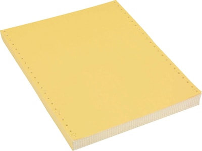 Create multipart invoices, forms, or other documents with this colored computer paper. The four-sheet format features white, yellow, pink, and orange pages, so you can easily assign an owner to each color. Perforated edges make it easy to remove the carrier strips, and the continuous pages work with dot-matrix printers for convenient compatibility. This Staples four-part computer paper is carbonless for mess-free printing.