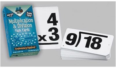 Best Seller! Notched corners for quick organization. Large, easy to handle 6-1/4" x 3-1/4" cards. Bold, heavy type to use with large groups. Durable, thick card stock (14 pt.). Self-checking. Great for small groups, pairs, and whole class participation. Great for teaching the relationship between multiplication and division (e.g.: 3 x 1 = 3 on one side, 3 / 3 = 1 on the reverse).
