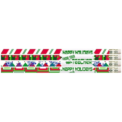 Musgrave Pencil Company Happy Holidays From Your Teacher Motivational Pencils, 12 Per Pack, 12 Packs (MUS2519D-12)