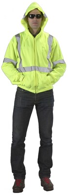 Mutual Industries 4XL Lime ANSI class 3 hoodies having zipper closure are made of high quality nominal 9 oz./sq. yd. ANSI fleece for added softness and comfort.