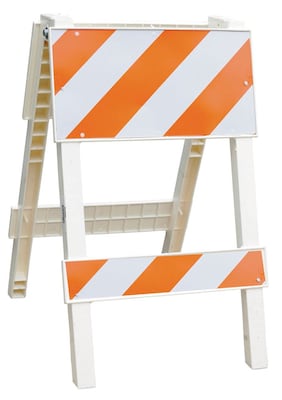 Mutual Industries 8" Type 2 high-quality barricade with reflective stripe is injection molded for superior strength and comes in type 2 NCHRP-350 compliant style.