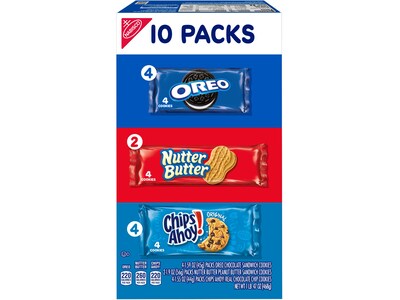 - Cookies variety pack boxes of 10 snack packs, including four OREO, two Nutter Butter, and four CHIPS AHOY! Original