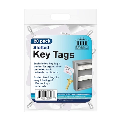 The Nadex Coins Slotted Key Tags are ideal for racks, cabinets, and boards. The frosted blank write on tags for easy labeling of keys and cards. Each tag holds one or more keys. This is a pack of 20