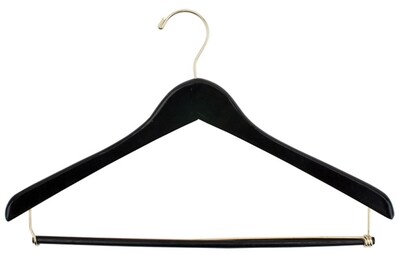 NAHANCO 17" Wood Concave Suit Hanger, Gold Hook, Black, 100/Box (72-17)