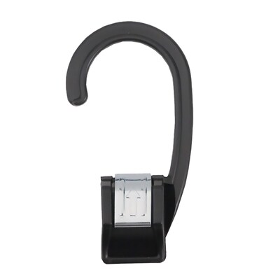 3 1/4" black plastic Hang-All Plastic Slide and Snap Grip With Black Hook.