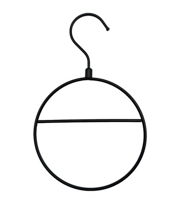 This accessory hanger has a ball end hook that swivels 360 degrees, and measures 9.5" top to bottom, with a 5.9" diameter and 4mm thickness. This matte black accessory hanger is great addition to any retail shop or home closet.