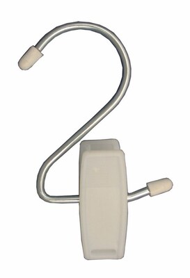 - 4 ½” hang-all, white plastic clip with chrome hook