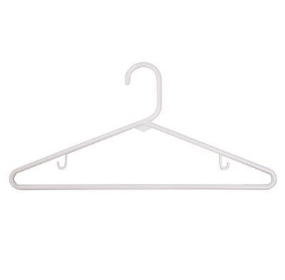 Plastic Budget Tubular Hangers - 16 3/8" White (Pack of 24). Features small hooks to hang garments with straps. Economic way to hang large numbers of medium weight garments.
