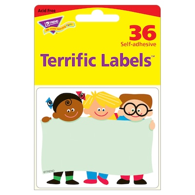 Trend Enterprises® Name tag ideal for grades K - 2 measures 3" x 2 1/2" and provides smooth finish for no-smear, easy writing using markers or pens. Name tag with kid's design can be used as envelope or box labels, sold as 36 per pack.