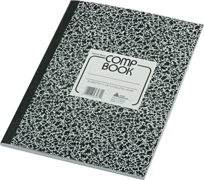 National® Composition Book, Black Marble Cover, College Ruling, 11" x 8 3/8", 80 Sheets (43481)