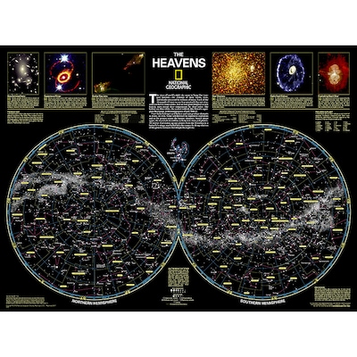 - National Geographic's The Heavens shows star charts and constellations for both the Northern and Southern Hemispheres.