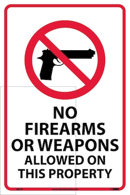 National Marker "No Firearms Or Weapons Allowed On This Property" Adhesive Sign Label, 18" x 12" (M452P)