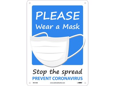 National Marker Wall Sign, "Please Wear a Mask," Plastic, 14" x 10", Blue/White (M614RB)