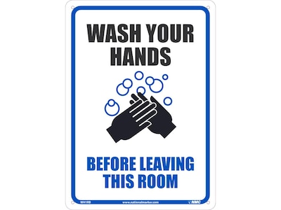 National Marker Wall Sign, "Wash Your Hands Before Entering This Room," Plastic, 14" x 10", White/Blue/Black (WH1RB)
