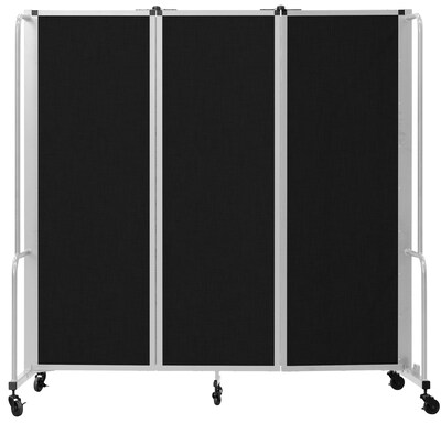 National Public Seating Robo Series 3-Panel Folding Mobile Room Divider, 72"H x 72"W, Black Fabric (RDG6-3PT10)