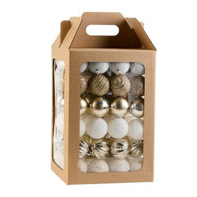- Includes 96 gold, silver, and white ornaments for an elegant holiday look.