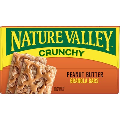 Provide a quick and delicious snack option with these peanut-butter Nature Valley bars. Stock up your pantry or break room with healthy options with this box of peanut-butter granola bars. These bars are all-natural and made from wholesome ingredients for guilt-free snacking, perfect for practices, meetings, games, and more. These peanut-butter Nature Valley bars come in a box of 18 for easy bulk purchasing.