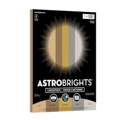 Let your imagination take off with Astrobrights colored cardstock, in Naturals 5-Color Assortment. Creative geniuses and novices alike can create flyers, invitations, presentation covers, scrapbooking, school projects and DIY paper crafting. Display and store projects with confidence, since each sheet is lignin and acid-free. Plus, this cardstock works well with copiers, inkjet, and laser printers. Astrobrights cardstock is also compatible with electronic cutting machines so you can create intricate letters, shapes and other designs. Save money on pricey full-color ink - just add black ink! Brighter Colors. Brighter Ideas.