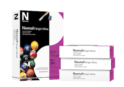 Neenah Paper 65 lb. Cardstock Paper, 8.5" x 11", Bright White, 250 Sheets/Pack, 4 Packs/Carton (91904/92904)