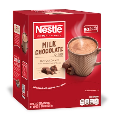 - Nestlé Hot Cocoa Milk Chocolate Flavor is a rich-tasting, chocolatey hot cocoa mix that provides a great value rich and indulgent chocolate flavor. Made with real Nestlé cocoa using sustainably-sourced cocoa beans.