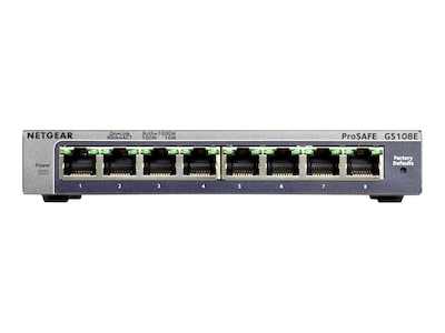 The NETGEAR GS108Ev3Plus Desktop Switch features 8-Port Gigabit Ethernet, ProSAFE Lifetime Protection and more.