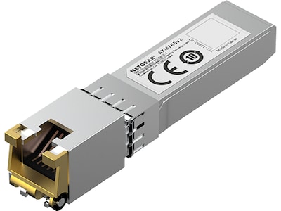 Netgear 10GBASE-T SFP+ transceiver delivers 10G copper connectivity with CAT6a or CAT7 cabling up to 262.5' when inserted in a switch SFP+ fiber module slot. The transceiver fits into SFP+ or SFP28 interfaces of M4250, M4300, and M4500 managed switches.