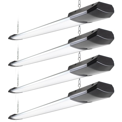 The Newhouse Lighting 48 in. 10,000 Lumen LED Hanging Shop Lights are the perfect 4ft LED shop light for garages, workshops, offices, basements, storage areas, game and recreation rooms, and utility rooms. These LED shop lights provide 10,000 Lumens of crisp LED light, in a pleasing 4000K color temperature. Please take note that these are not linkable led shop lights. This fixture is rated for 25,000 hours and will provide more than 20 years of service. As always, Newhouse Lighting provides the best Warranty in the industry and covers this fixture for 5 years. Includes (4) LED Shoplight (1) 5 ft. power cord, (2) S hooks, and (2) hanging chains.