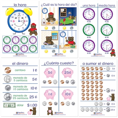NewPath Learning Time & Money Wall Charts, Spanish Edition, 6/Set (NP-930325)