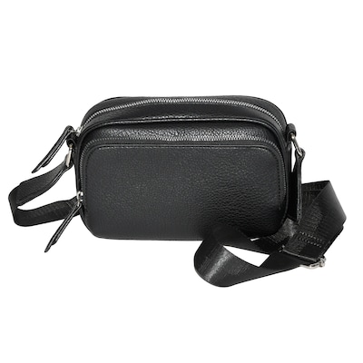 This Nicci crossbody bag with web strap is made of soft pebble PU and features a front zipper pocket for easy access to all your small items. Carry your sunglasses, cell phone, your cash and cards in the main zipper compartment. This bag makes every activity look fashionable!