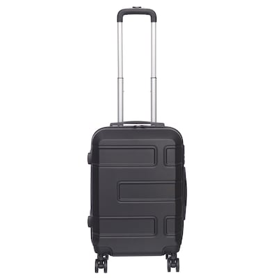 - This black luggage features a durable, lightweight, hard ABS exterior.