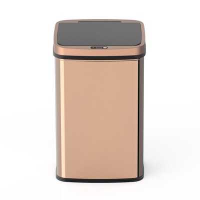 The NineStars gold stainless finish adds elegance to touchless disposal. Sensor lid opens automatically and closes quietly with smart delay system that reduces battery usage.