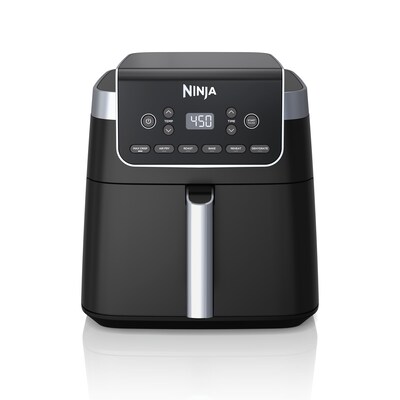Meet the Ninja Air Fryer Pro XL, a fast and easy way to get the perfect crisp with up to 450F of heat. MaxCrisp Technology surrounds your favorite foods with superheated air for hotter, crispy results. Cook up to 9 lbs. (6.5 QT) of wings using little to no oil and enjoy your favorite foods guilt-free. With 6 cooking functions, you can satisfy any craving, from crispy snacks to full meals. Cleanup is a breeze with a nonstick and dishwasher-safe crisper plate and basket.