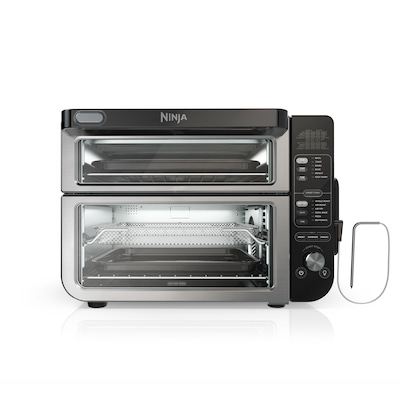 Meet the Ninja Double Oven that has the power of two ovens in the counter space of one. FlexDoor creates 2 separate ovens so you can cook 2 meals, 2 ways. Sync both ovens to cook a full meal that finishes at the same time with Smart Finish.