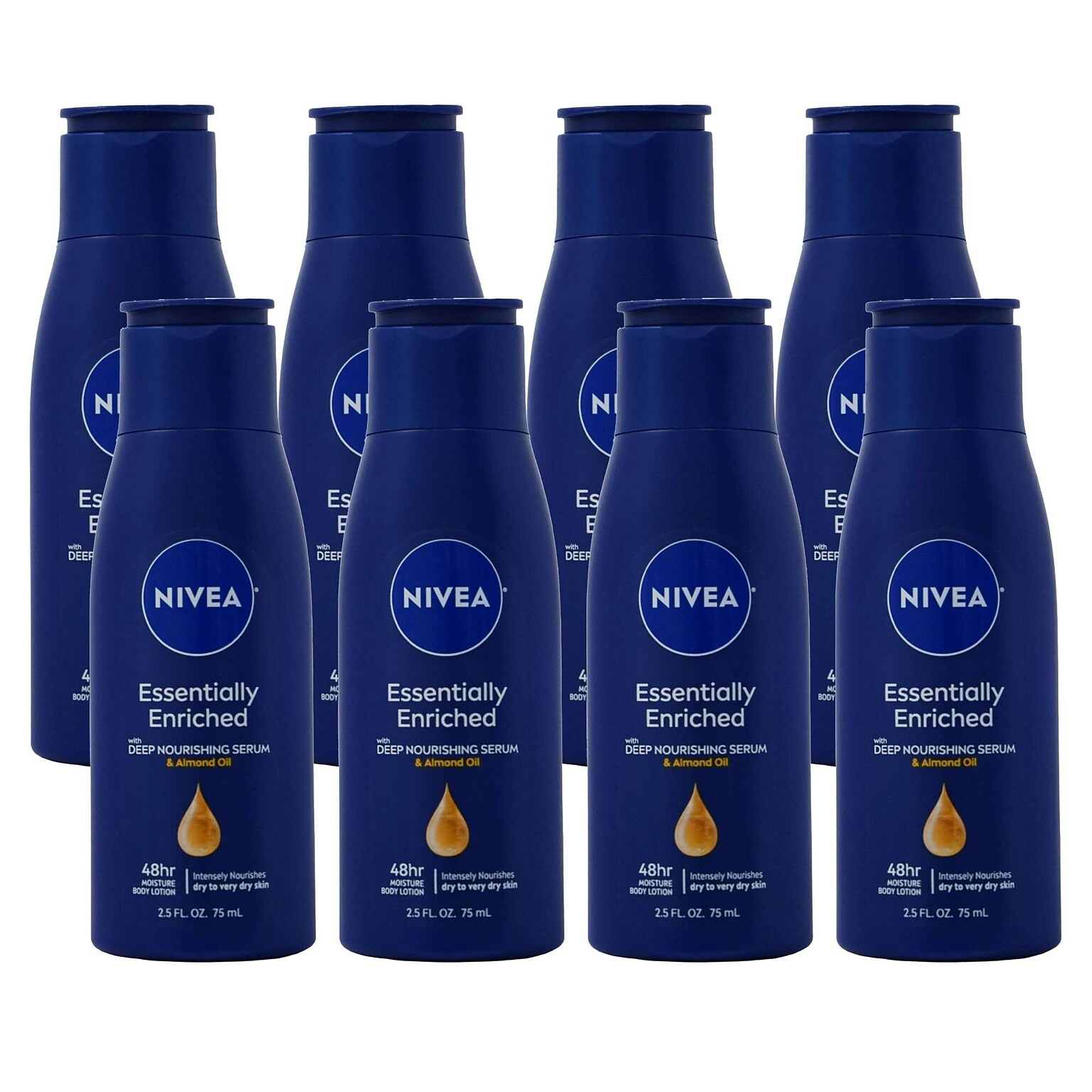 Nivea Essentially Enriched Body Lotion, 2.5 oz Bottle, 8 Bottles/Bag, 18 Bags/Carton