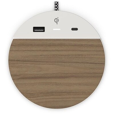The Nonstop Station C Wireless Charging Pad in Warm Walnut is a modern wireless charger, now with USB-C, perfect for use in hotels, offices, or at home. This charging pad features Qi Certified Fast 10W wireless charging, along with one USB-A and one USB-Cport. It boasts a bold Warm Walnut design with a light taupe housing and a walnut finish display. The charger also includes a braided cable for added durability.