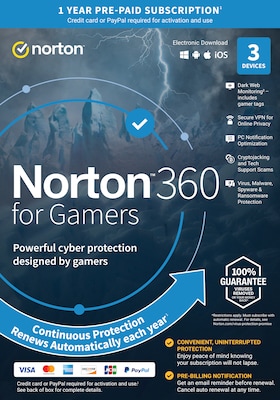 Norton 360 for Gamers for 3 Devices, Windows/Mac/Android/iOS, Download (21413621)