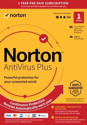 Norton AntiVirus Plus for 1 Device, Windows/Mac, Download (21390616)