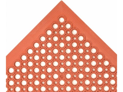 The NoTrax Competitor is a cost-effective lightweight anti-fatigue mat with molded-in beveled edges for a more workstation-oriented environment. It's made of general-purpose rubber and has a lightweight design, making it perfect for applications where the mat is routinely moved for cleaning. The large hole drainage system facilitates the removal of liquids and debris from work areas, and the molded-in beveled edges reduce trip hazards, allowing for easy access onto and off of the mat.