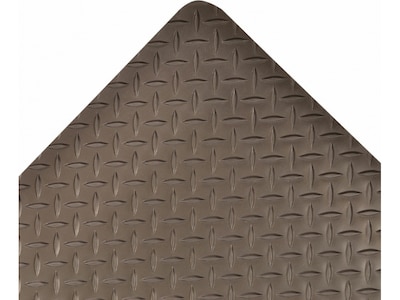 The Saddle Trax is a thicker, heavier, and stronger NoTrax anti-fatigue floor mat. Engineered to meet the toughest requirements of today's industrial applications and is particularly suited for multi-shift operations in dry work areas where the worker is standing for prolonged periods of time, such as workstations and assembly lines. With 1" of thickness, it is the ultimate anti-fatigue product to maximize worker productivity and comfort. The heavy-duty vinyl diamond-plate design provides non-directional traction, and is easy to clean. The top surface is combined with a dense closed-cell foam base utilizing NoTrax UniFusion technology. This virtually eliminates the possibility of delamination. The NoTrax floor mat comes with RedStop, a uniquely engineered nonslip backing technology that eliminates the slipping and sliding on smooth surfaces such as tile, wood, marble, and treated concrete. The sloped, beveled edges reduce tripping hazards and allow easy access on and off the mat.