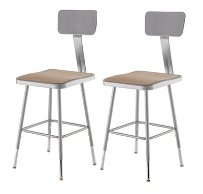 NPS 6300 Series Armless Wood 18" Height Adjustable Square Stool w/ Backrest, Gray, 2/Pack (6318HB/2)