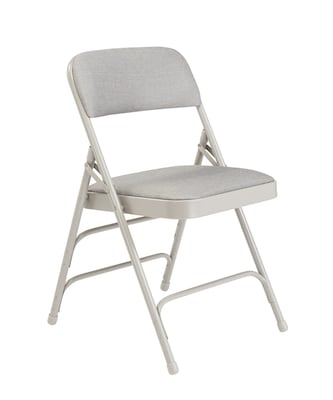 National Public Seating® Fabric premium triple brace folding chair in gray stone/gray color is corrosion resistant and supports up to 480 lbs of static weight.