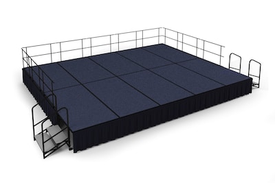 NPS 24" Stage Package, 16' x 20', Shirred Pleat Black Skirting, Blue Carpet (SG482410C04SS10)