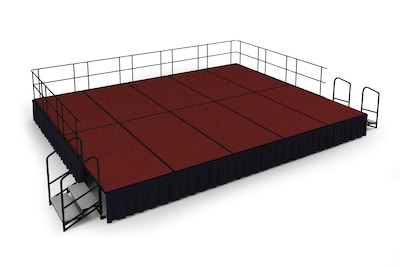 NPS 24" Stage Package, 16' x 20', Shirred Pleat Black Skirting, Red Carpet (SG482410C40SS10)